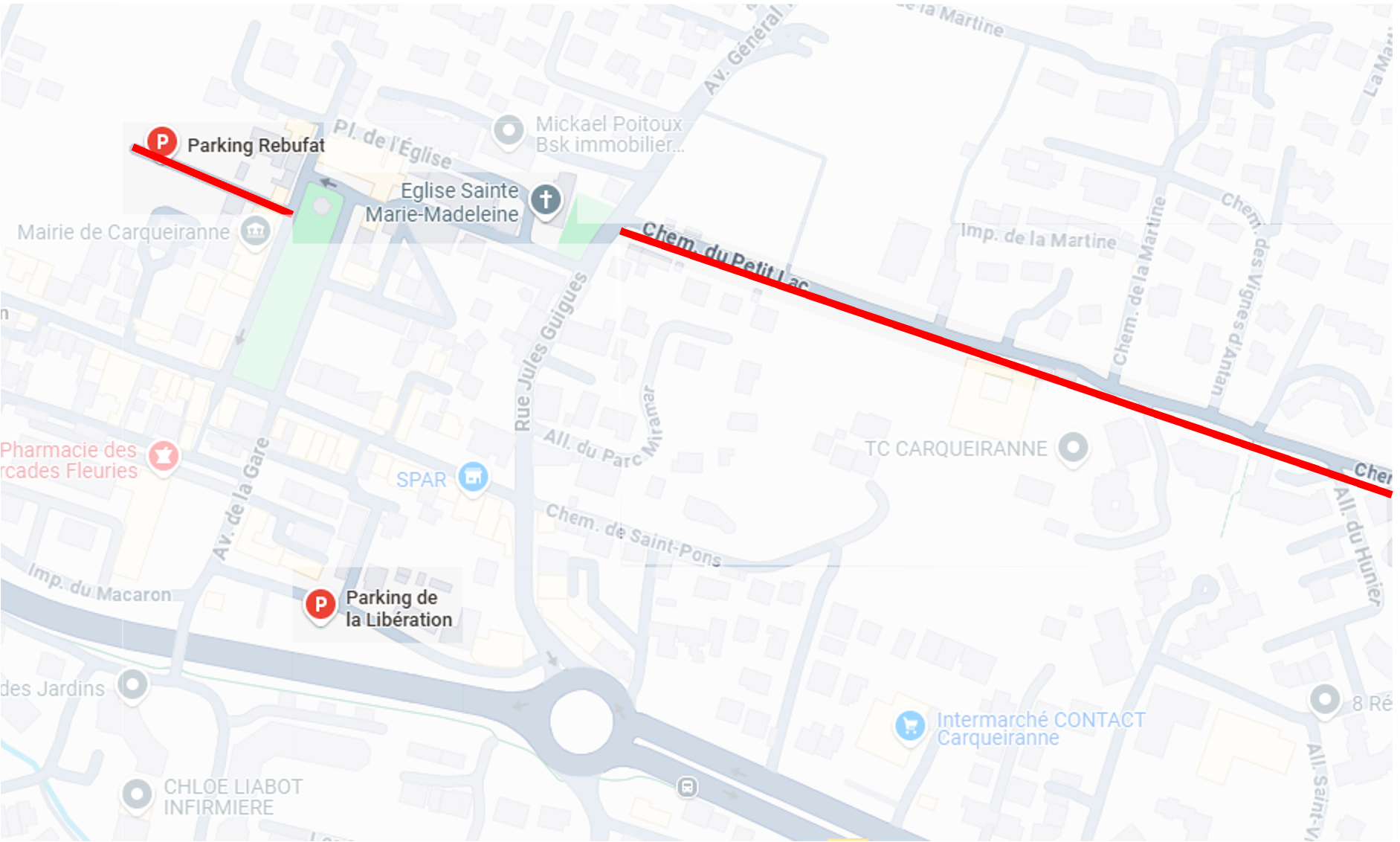Nous vous conseillons d’arriver environ 30 min avant le début de la cérémonie, les places de parking aux alentours étant limitées. Nous vous recommandons de privilégier les covoiturages et une de ces trois zones de stationnement indiquées en rouge sur le plan :